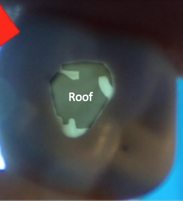 Cause: failure to maintain the depth of the bur resulting in partial removal of the roof of the pulp chamber