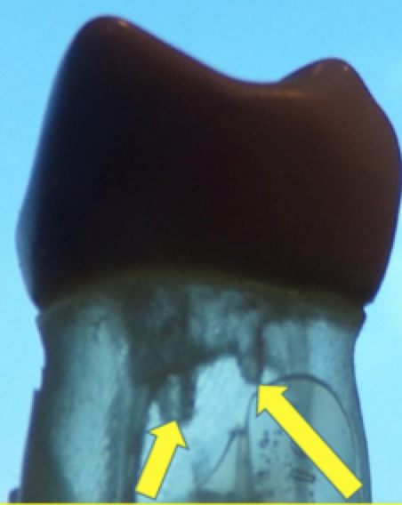 Cause: Taking the bur too far passed the roof of the chamber…lack of knowledge of the tooth’s morphology