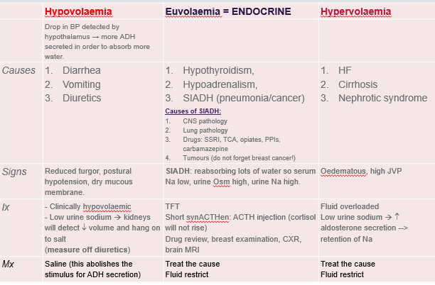 Causes: vomiting, diarrhea, diabetes insipidus, primary aldosteronism