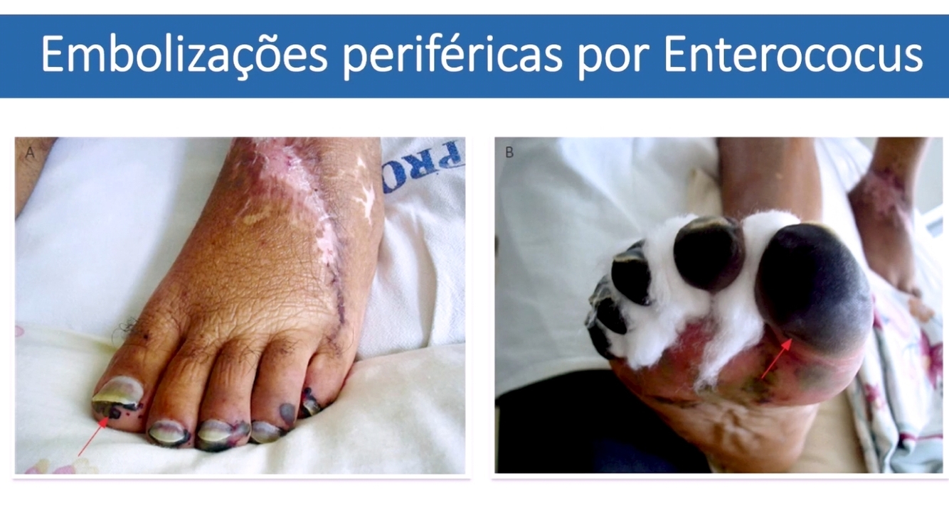 Qual a diferença das embolizações periféricas na endocardite por enterococco?