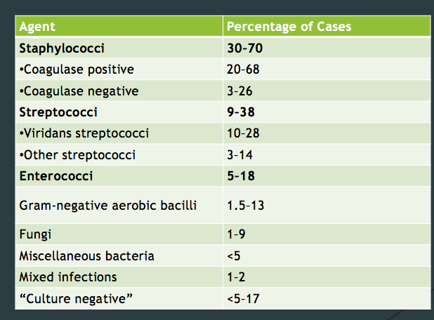 Strep viridans (common inhabitants of mouth/gingiva)