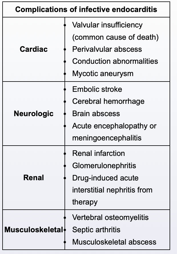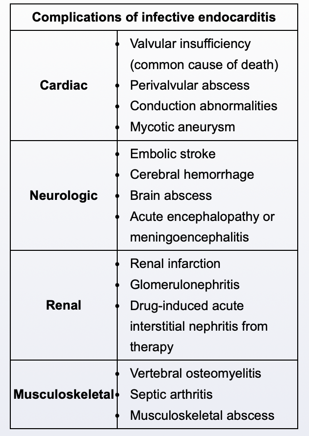 What are complications of infective endocarditis?