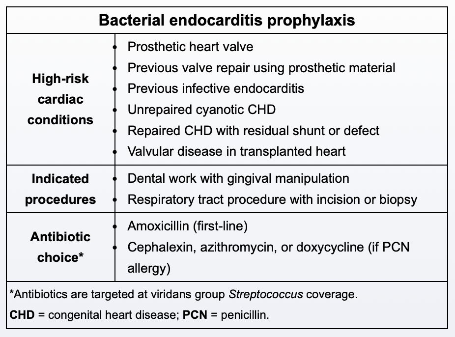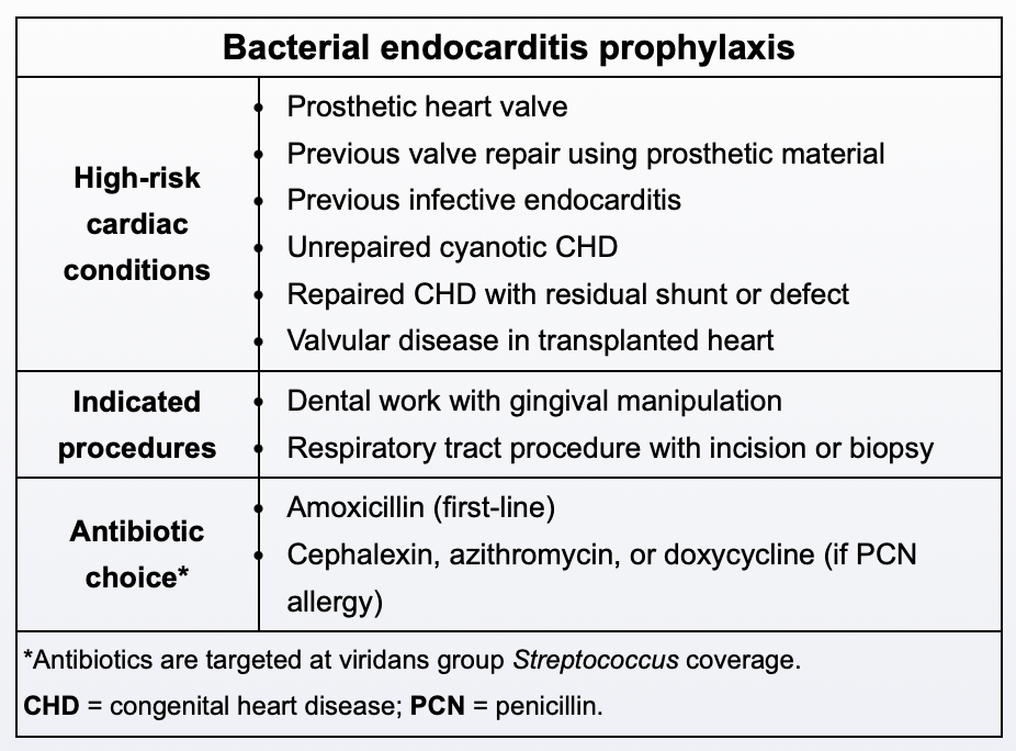 C) Amoxicillin to prevent Viridans streptococci.