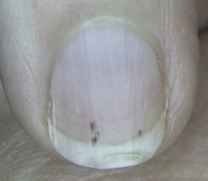 Infective endocarditis. Hemorrhages underneath the fingernails (i.e., splinter hemorrhages) are a common finding in IE and are caused by septic microemboli from infected heart valves. Immune complex deposition or microthrombosis occurs in subacute, infective endocarditis, as well as with SLE, or rheumatoid arthritis.