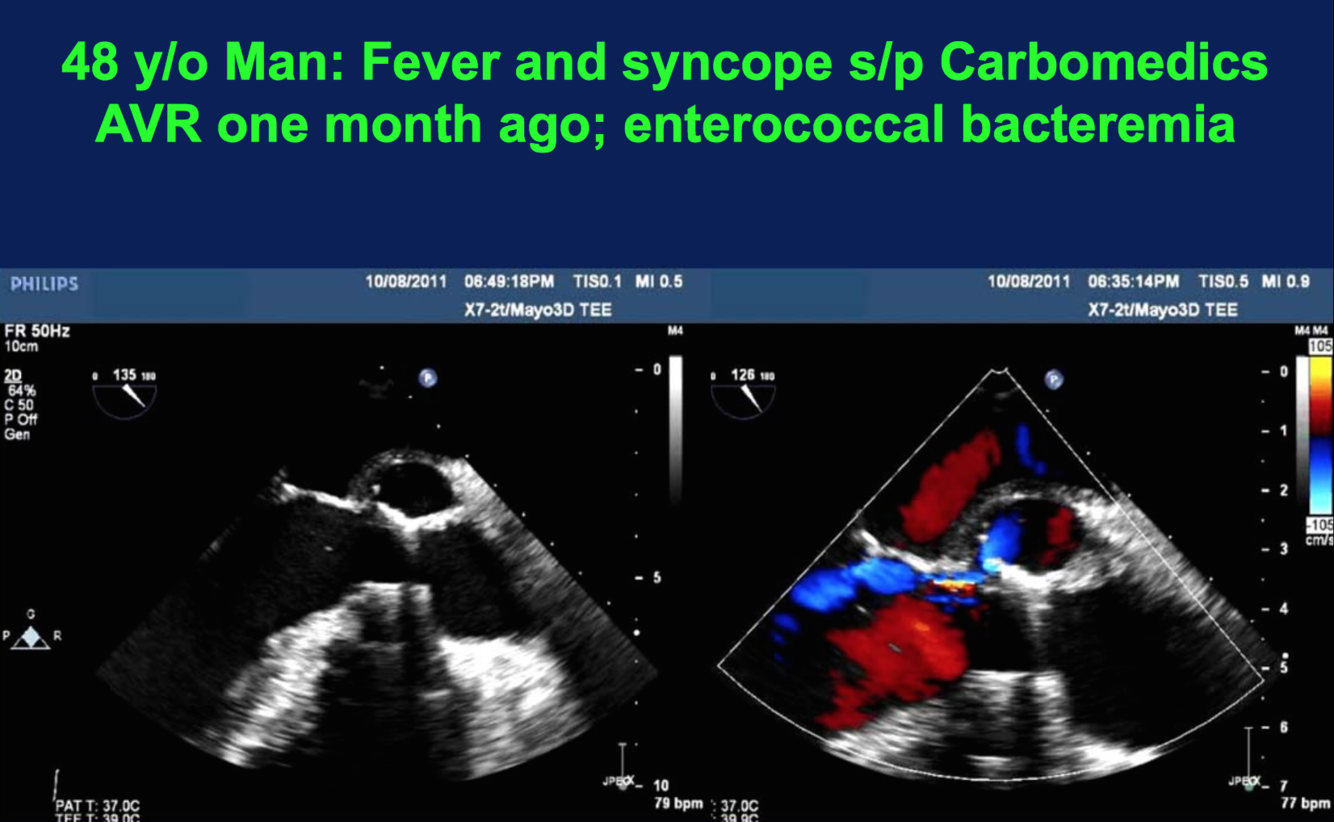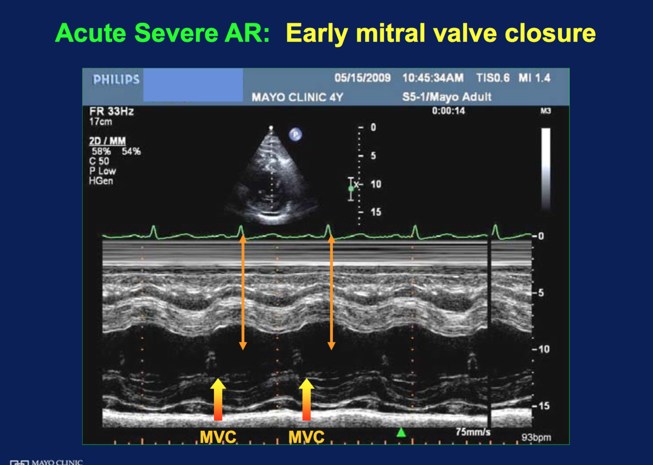 early closure of MV from severe AI (from SBE)- RX = emergent surgery