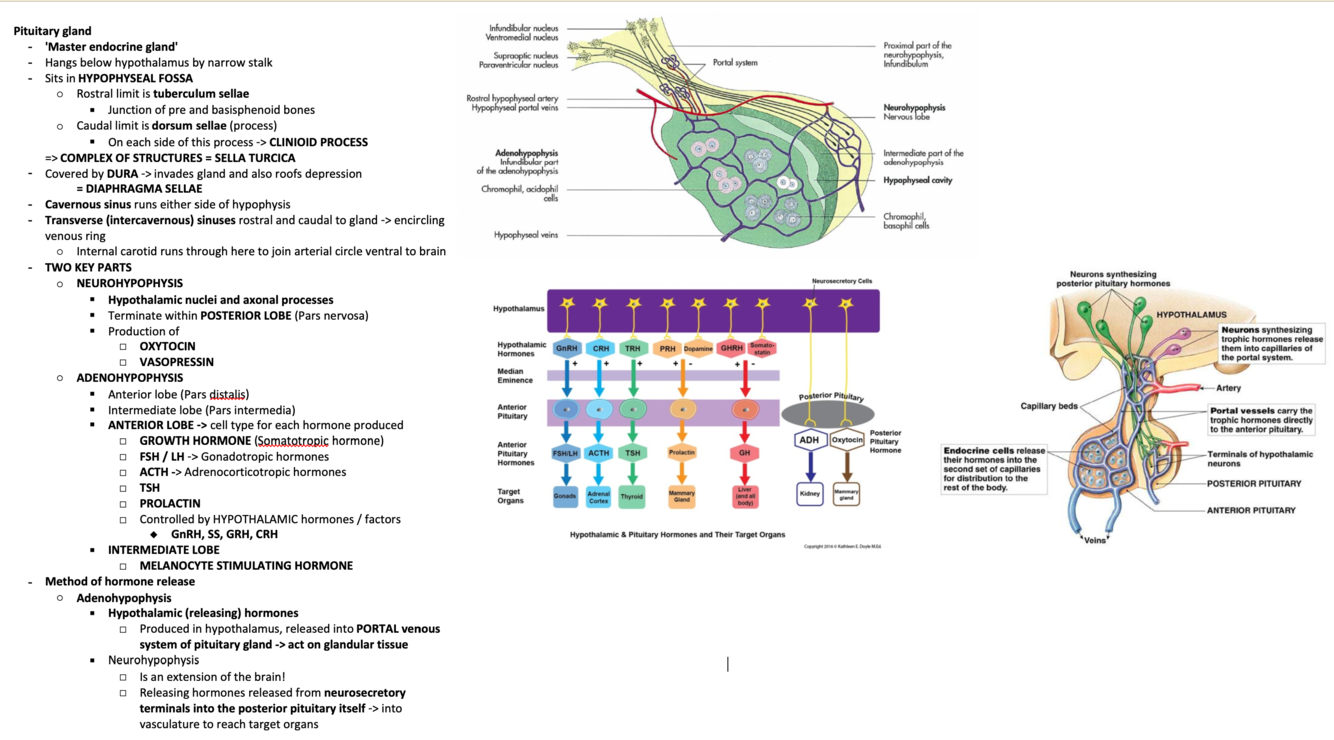 Detail anatomy and hormone production of the pituitary gland