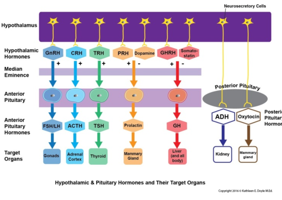 Detail means of hormone control / prodution in the adenohypophysis