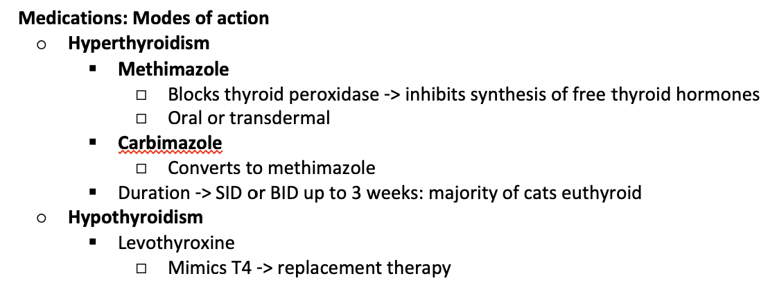 Detail drugs for hyperthyroid and hypothyroid treatment -> modes of action
