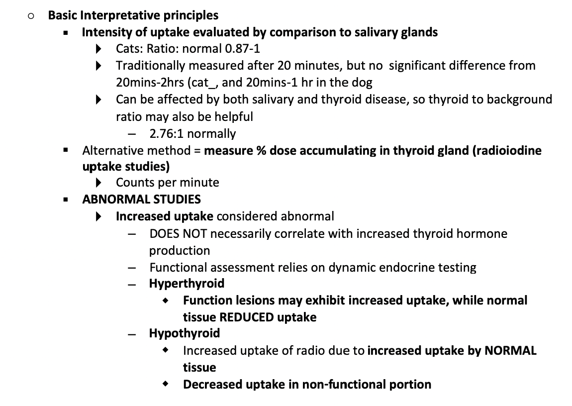 Describe basic interpretative principles for thyroid scintigraphy
