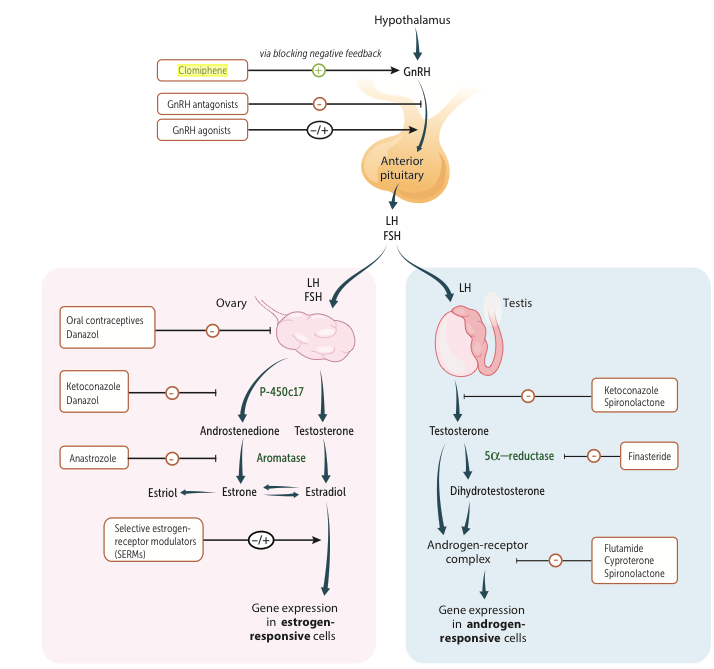 SOCK:Spironolactone,OCP (1st line after wt loss),Clomiphene for infertility,Ketoconazole