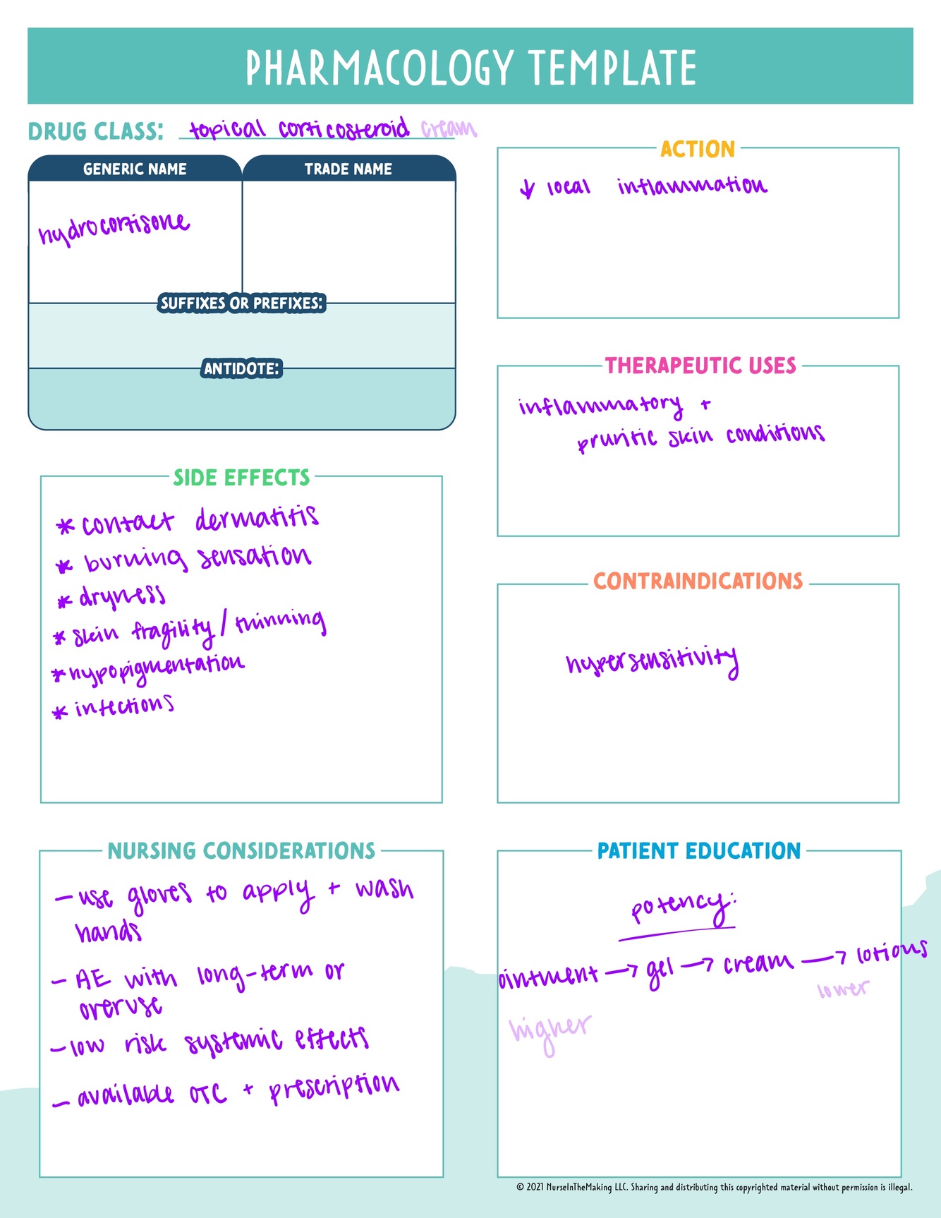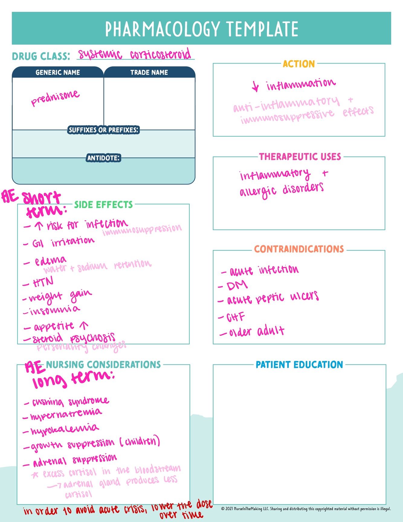 What are some examples of nursing diagnosis regarding corticosteroids?