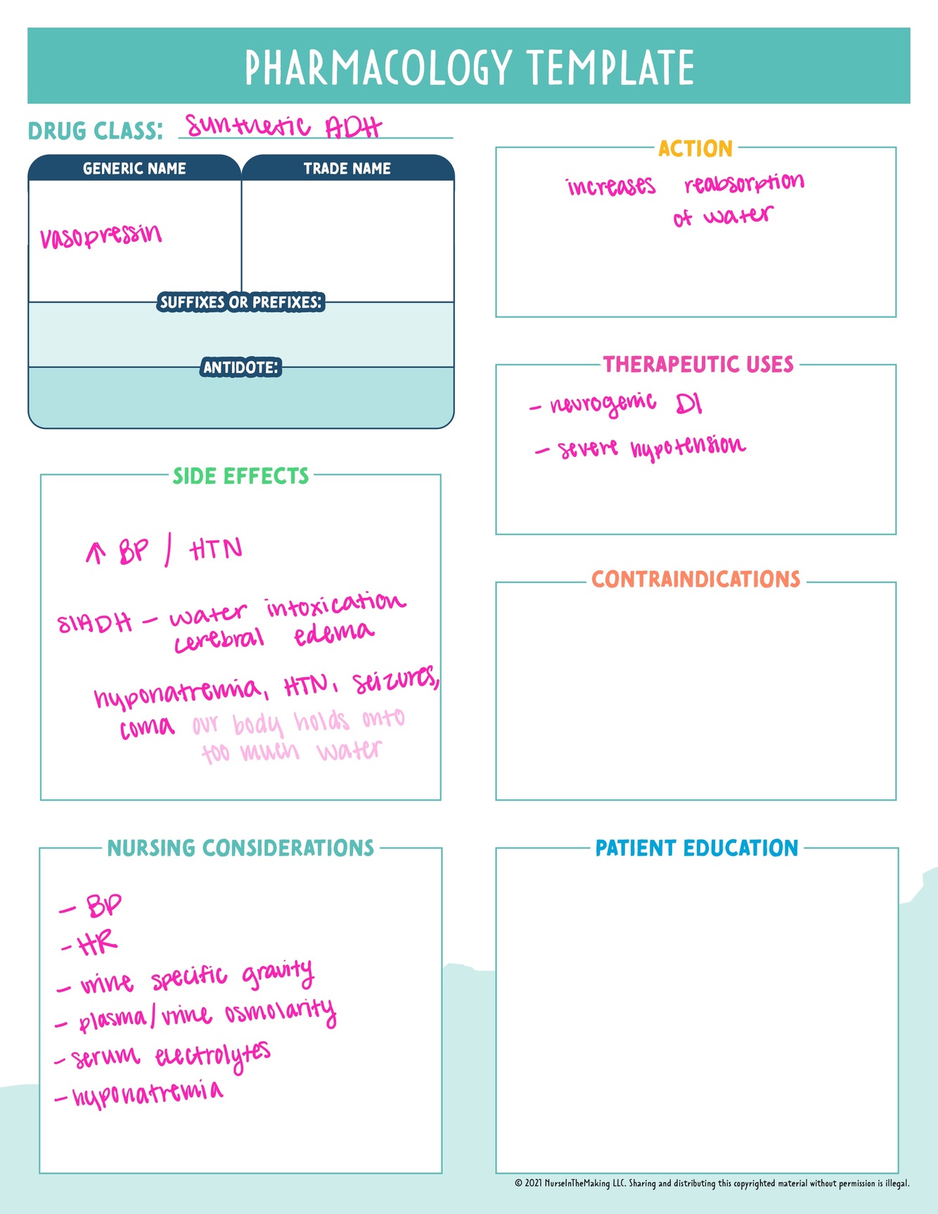 ADH: causes kidneys to release less water, decreasing urine production; high levels causes less urine production, low levels indicates greater urine production