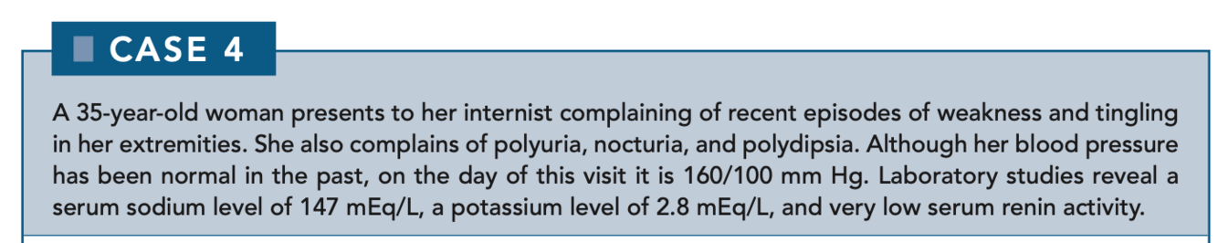 Primary hyperaldosteronism, also known as Conn syndrome, is suggested by the patient’s history and her hypertension, hypernatremia, and hypokalemia. Approximately 30%–60% of cases are due to solitary adrenal adenomas in the zona glomerulosa, the aldosterone-secreting layer of the adrenal cortex. Bilateral hyperplasia of the zona glomerulosa can also cause Conn syndrome.