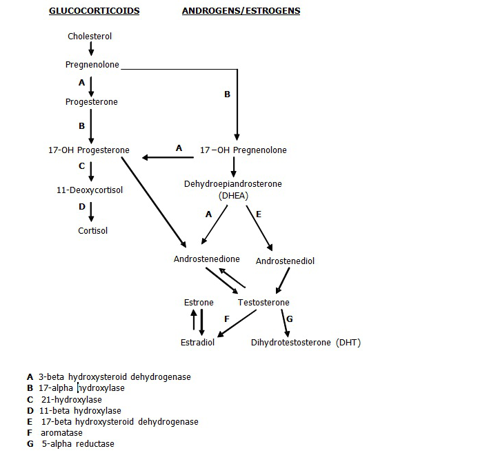 Steroid profile of 21 alpha hydroxylase deficiency