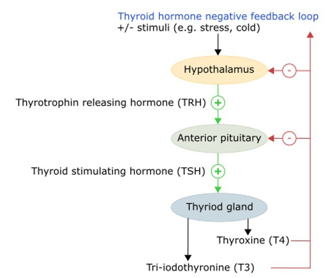 Outline the mechanism feedback pathway and hence the control of hormone release