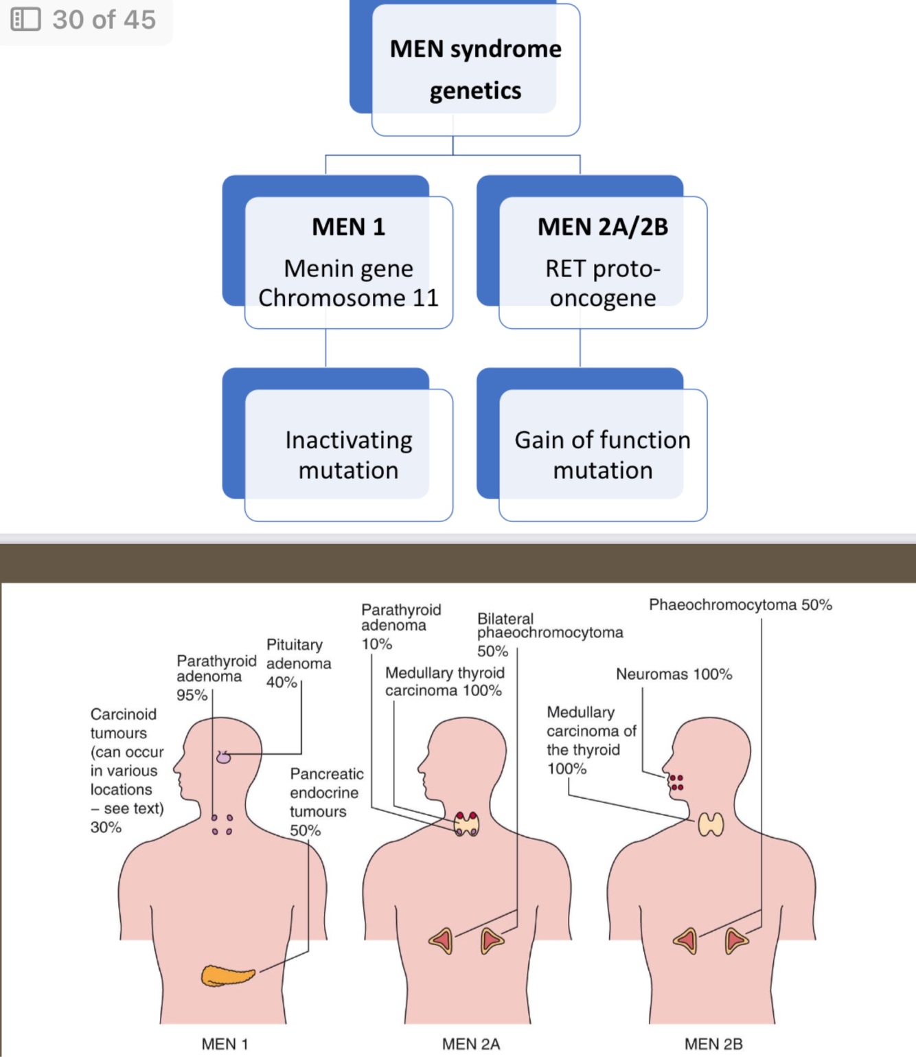 • Pancreatic endocrine tumours (30%)