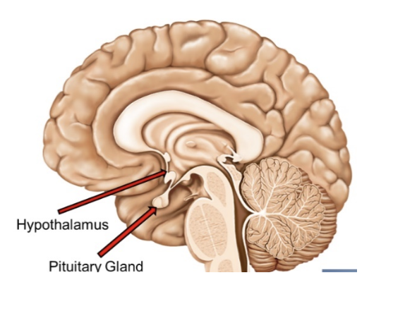 The hypothalamus is considered a part of the brain, while the pituitary gland is attached to the brain.