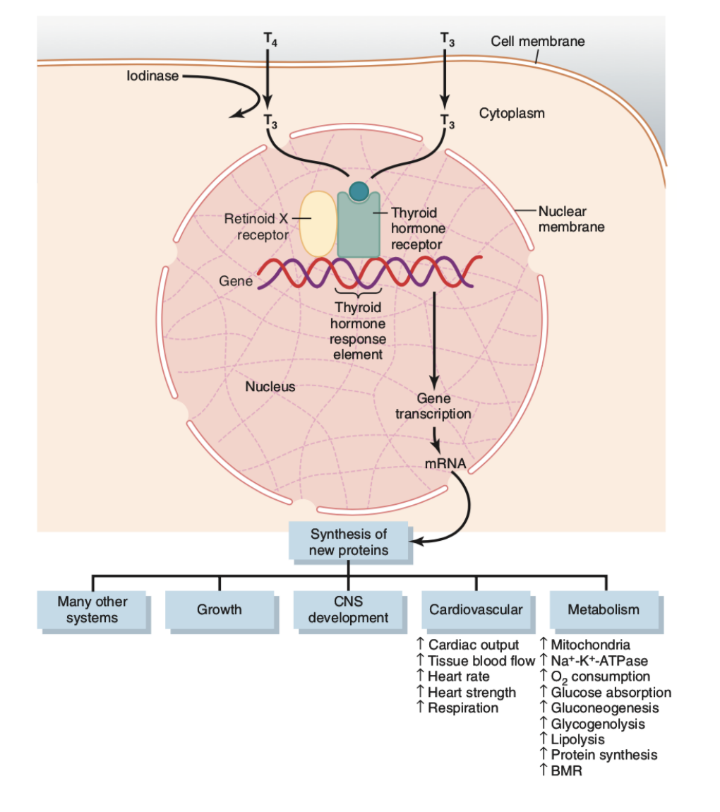 T3 enters cells more rapidly and is more potent than T4.