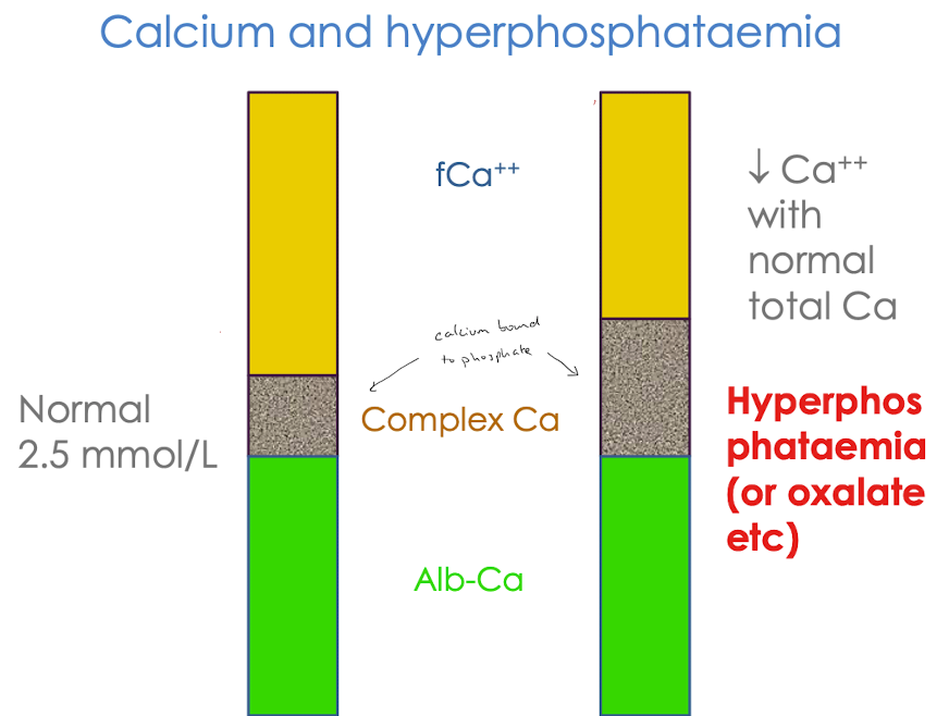 Free calcium (50%) Complexed calcium (5%) Protein-bound calcium (45%)