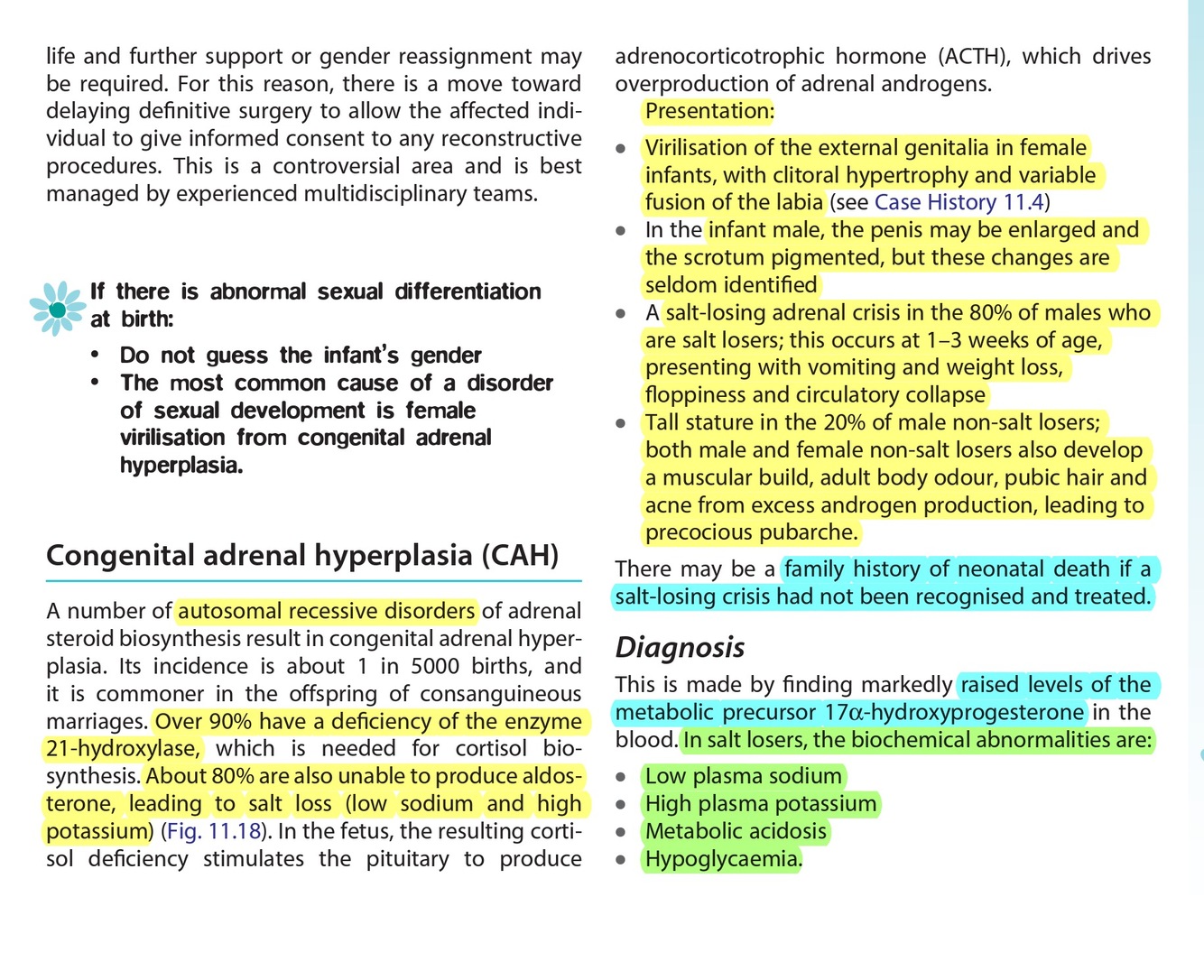 2- meneralocoticods and NACL is recommended in all pt who have classical CAH wether or not salt losing form e.g. Fludrocotisone