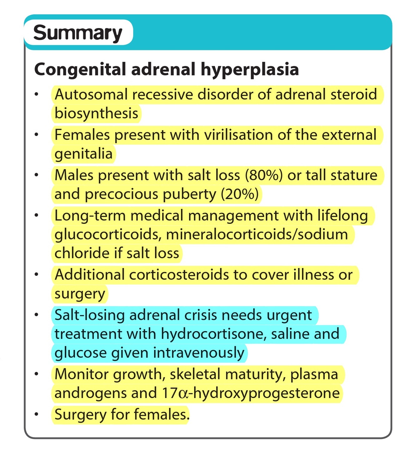 Mangment : 1- glucocorticoid… is necessary in children who have classical 21-hydroxylase deficiency and in symptomatic non classical 21 hydroxylase deficiency