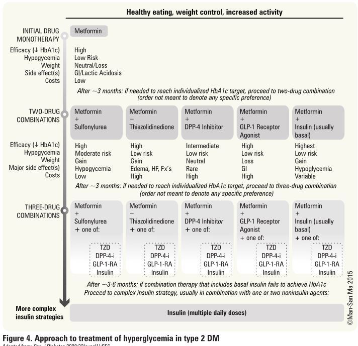 What are some approaches to treatment of hyperglycaemia in type 2 DM?