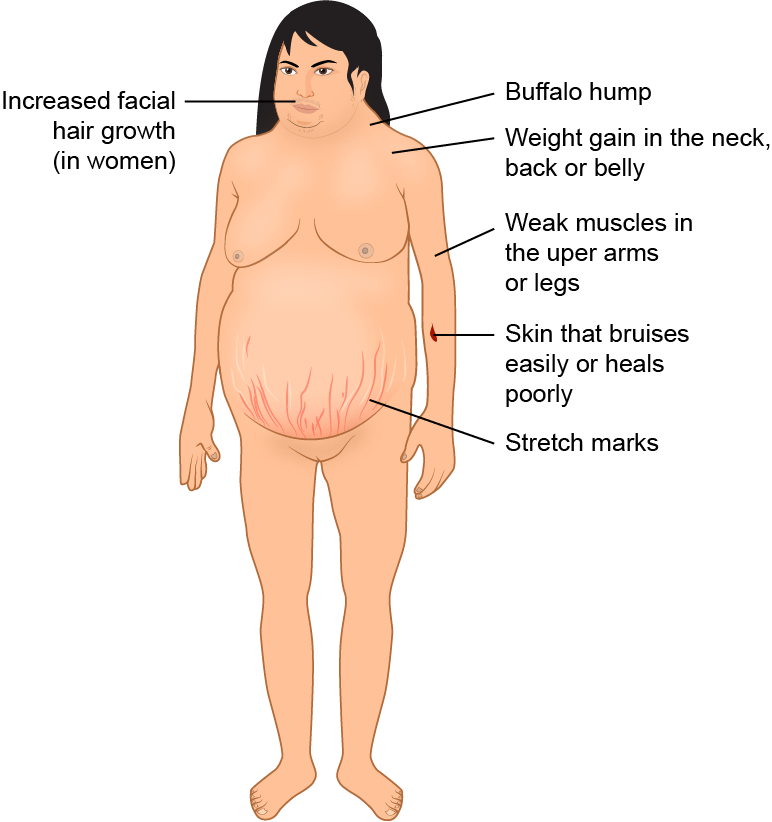 These are caused by the client getting too many steroids (hypercortisolism). Steroids control many functions in the body.