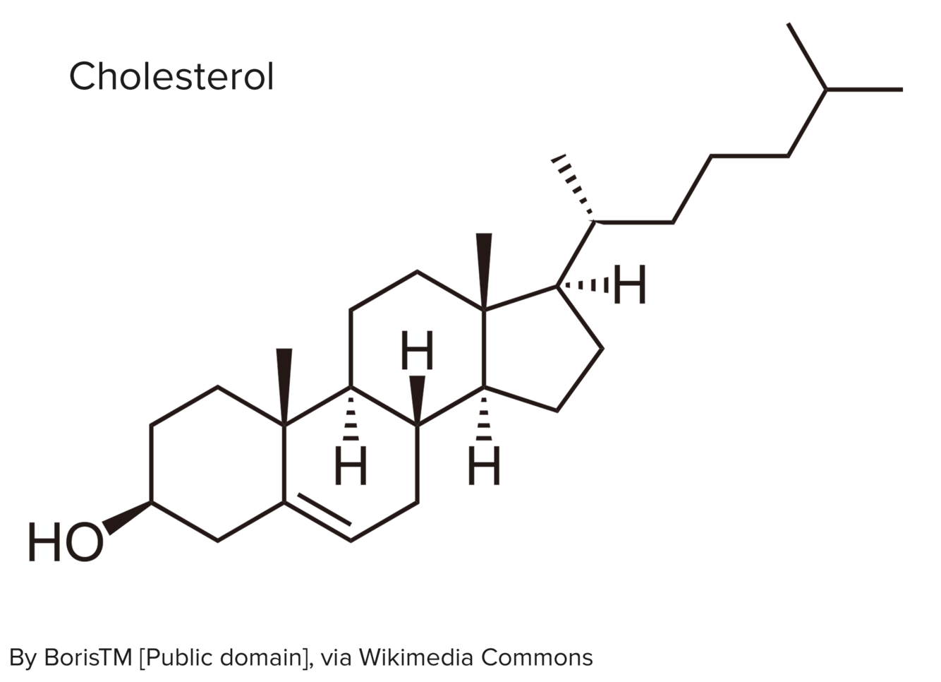 This molecule’s rings and hydrocarbon tail make it hydrophobic, or insoluble in water.
