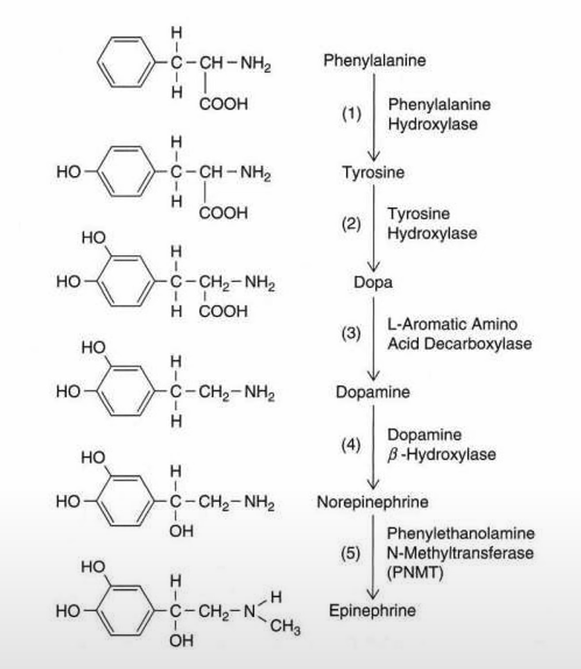 → dopa → dopamine → NE → Epi