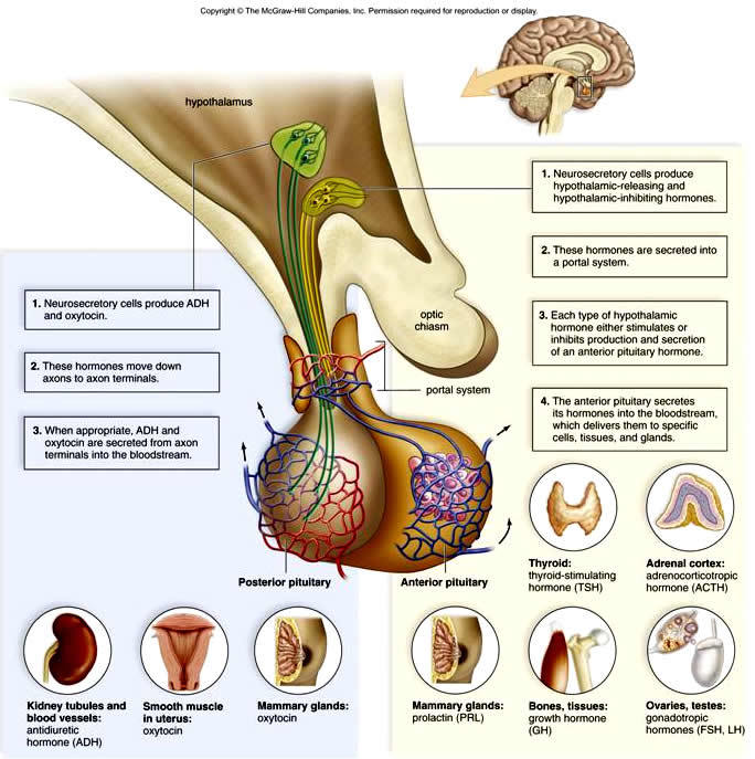 Hormones secreted by Hypothalamus and stored + released by the Posterior pituitary gland