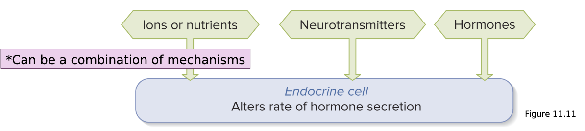 How does Another hormone acting on the endocrine cell affect hormone secretion?