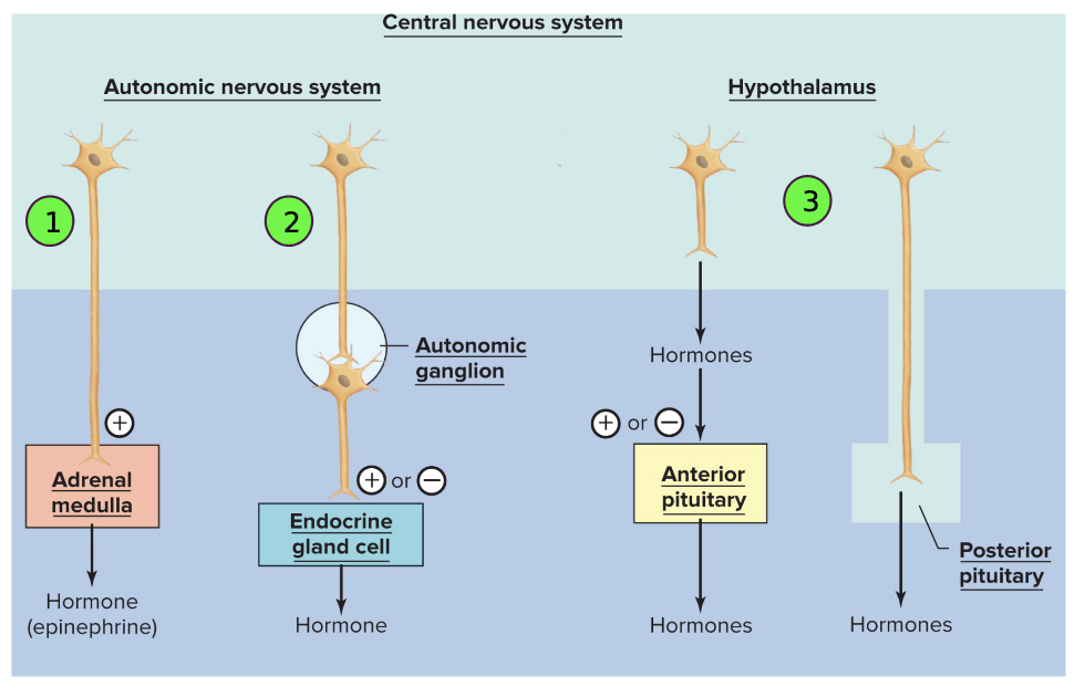 How does Neurotransmitter release from neurons ending on endocrine cells affect hormone secretion?