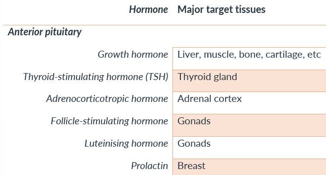 What hormones does the anterior pituitary gland secrete?