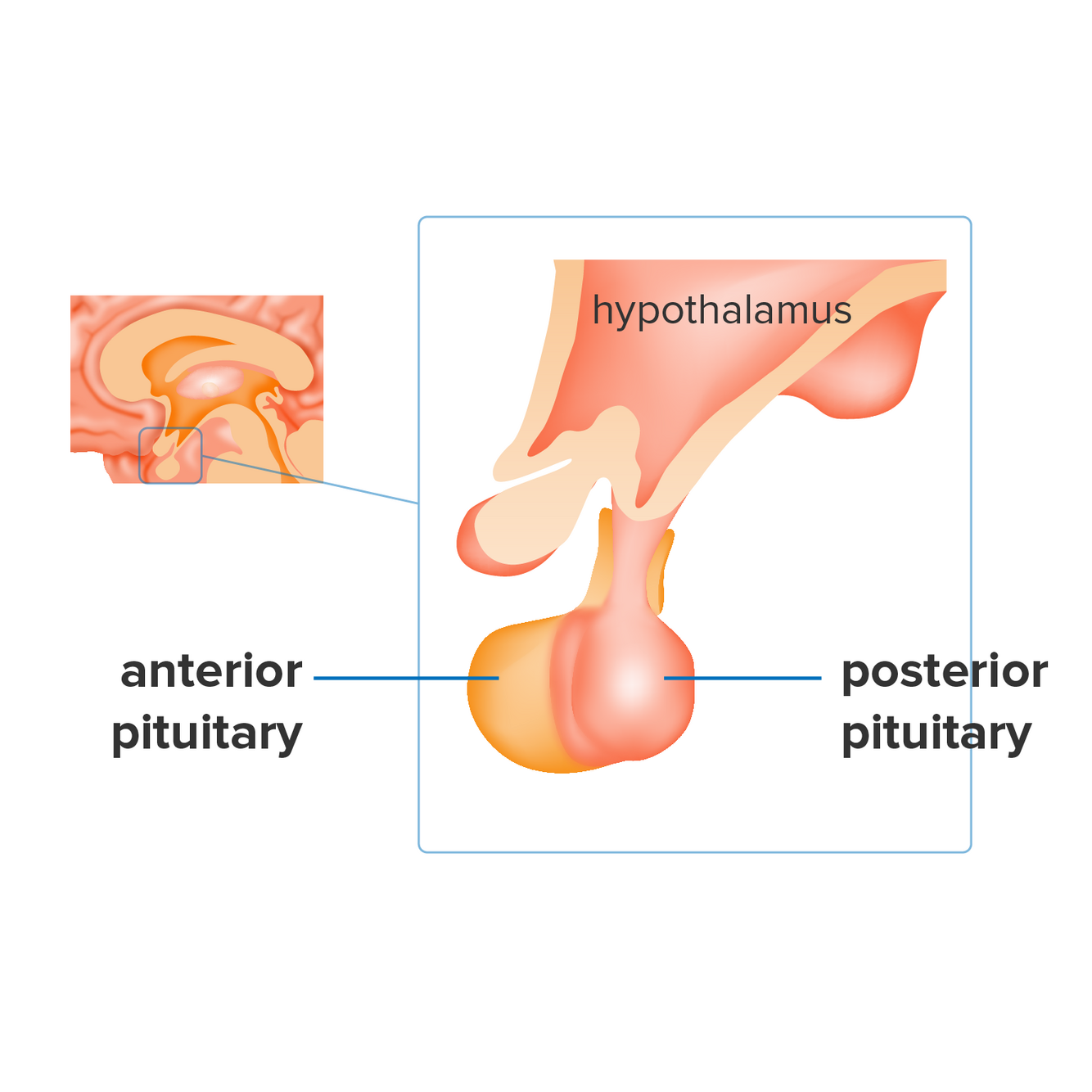 Hormones that are secreted from the anterior pituitary are also synthesized there. In contrast, posterior pituitary hormones are synthesized in the hypothalamus.