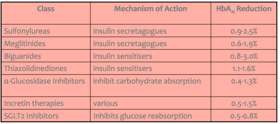 – Appear to be less effective in reducing HbA1c than metformin, sulfonylureas or thiazolidinediones