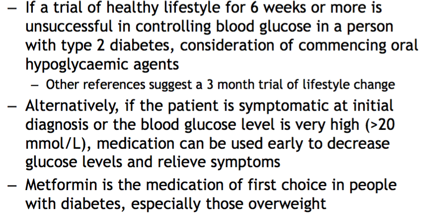 – In over 50% of people presenting with type 2 diabetes restriction of energy intake, increased activity and weight reduction will initially normalise blood glucose levels (medication is likely to be needed later)