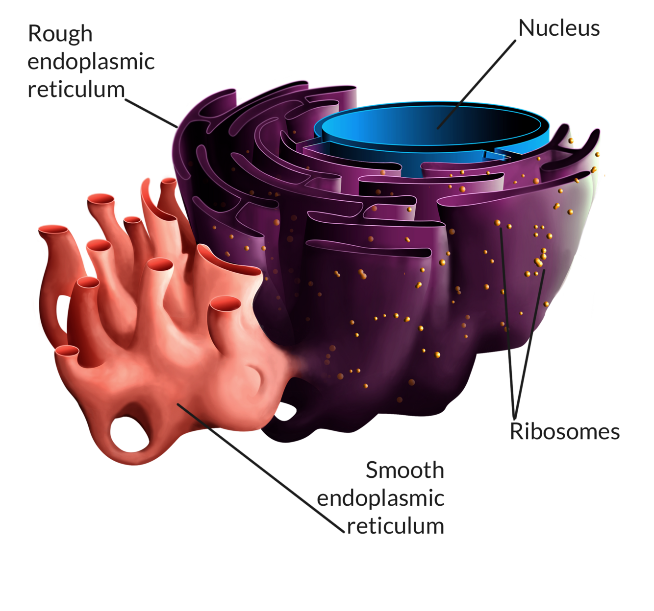 ER stands for “endoplasmic reticulum,” a membrane-bound organelle.