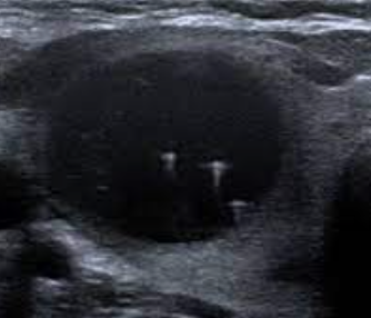 Ultrasound follow up shows a solid thyroid nodule becoming more cystic over time…