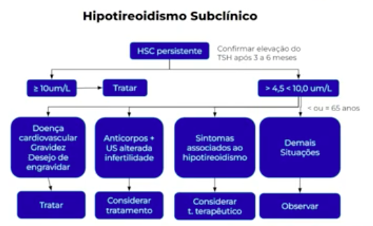 - questionável: tsh >/= 7 se < 65-70a / >/= lsn com anti tpo +