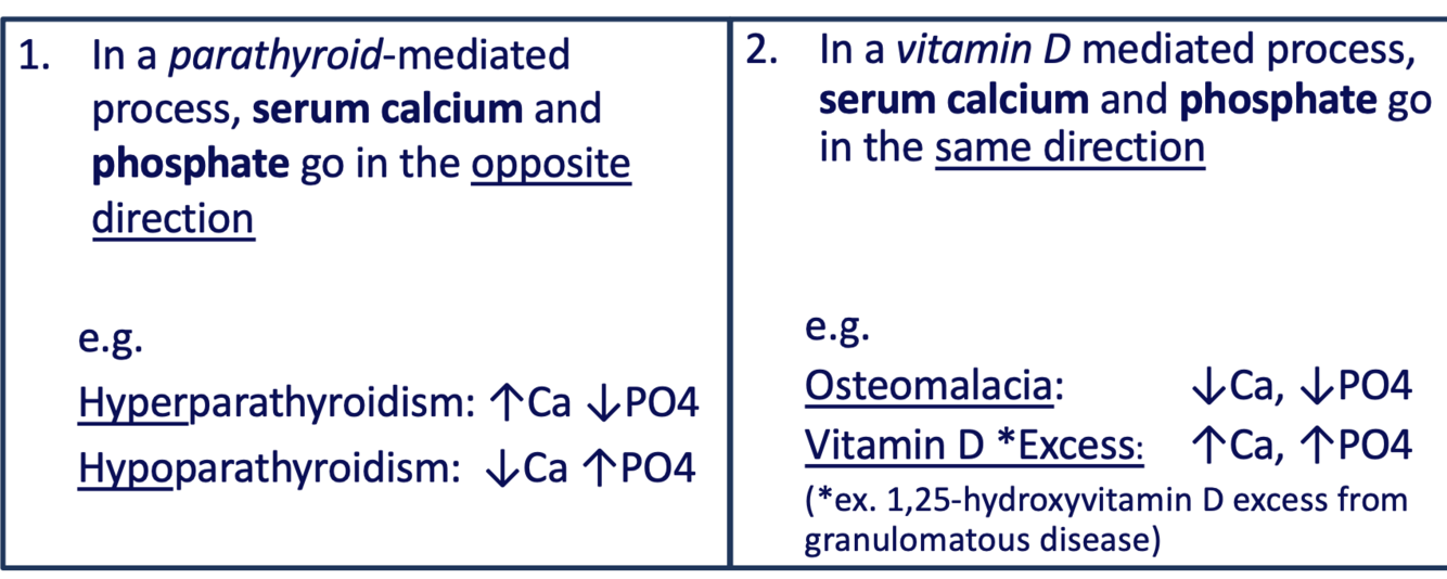 Que font le calcium et le phosphore dans les processus médiée par la vitamine D VS parathyroïde?