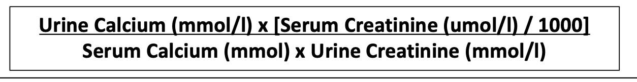 Calcium urinaire >6,25 (250mg/jr) chez les femme et 7,5mmol/d (>300mg/d) chez H