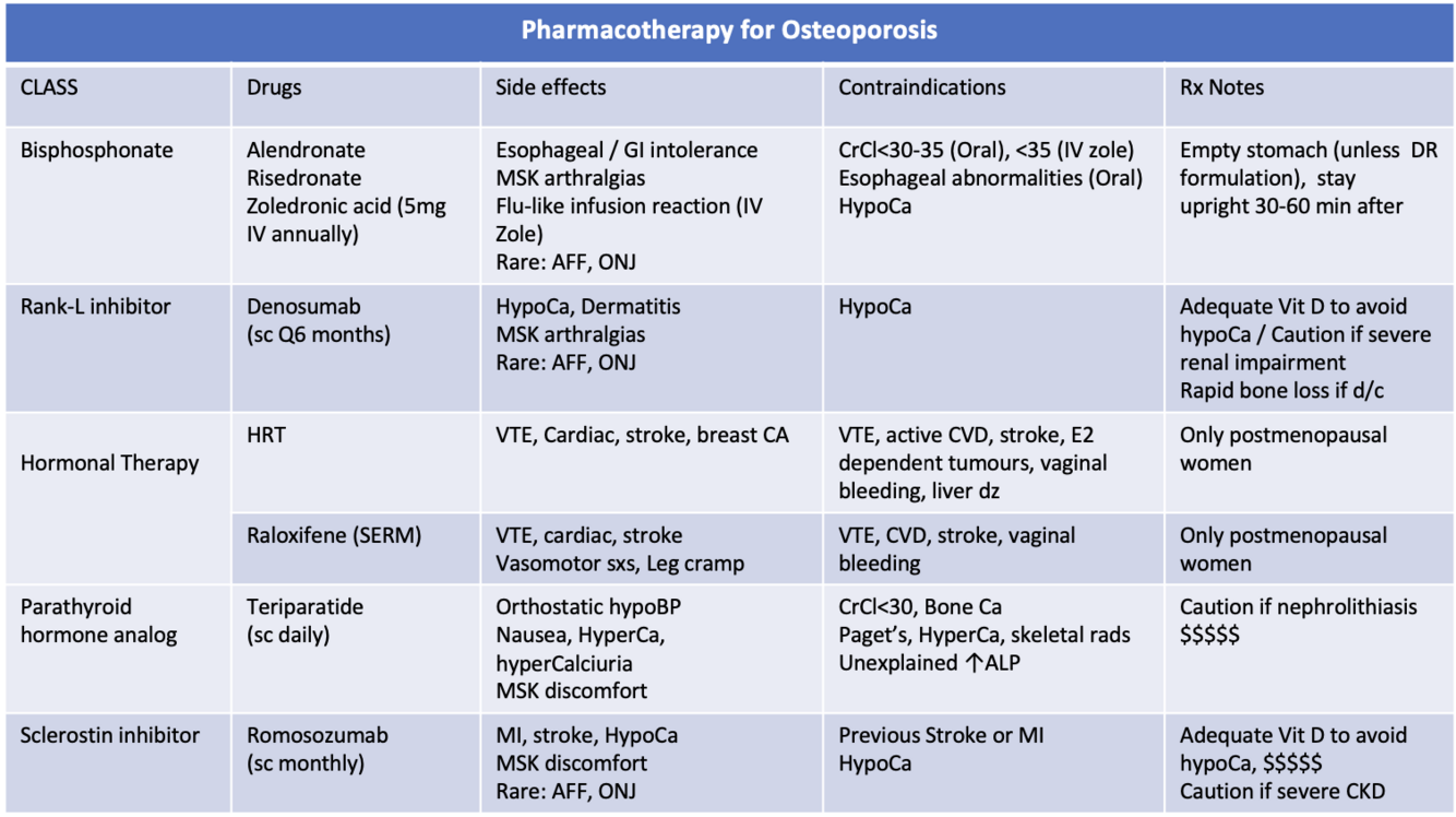 Quels médications prescrire en ostéoporose dans l’ordre dans lequel on doit les essayer?