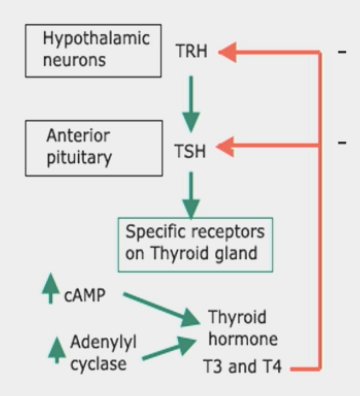 TSH = anterior pituitary –> receptors on thyroid gland