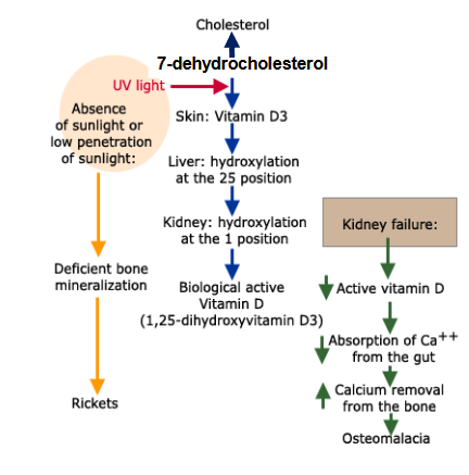 1. UBV light + 7-dehydrocholesterol in skin