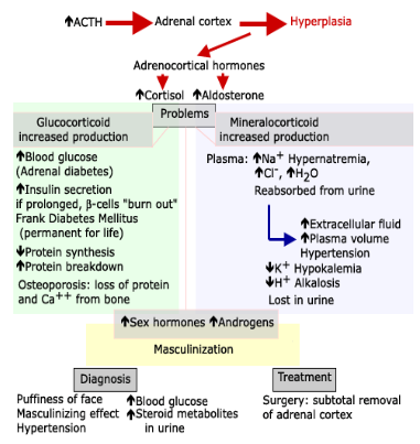 - protein and carbohydrtae metabolism: increase glucose levels. adrenal diabetes
