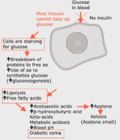 4. cells cant take up glucose bc no insulin for receptors