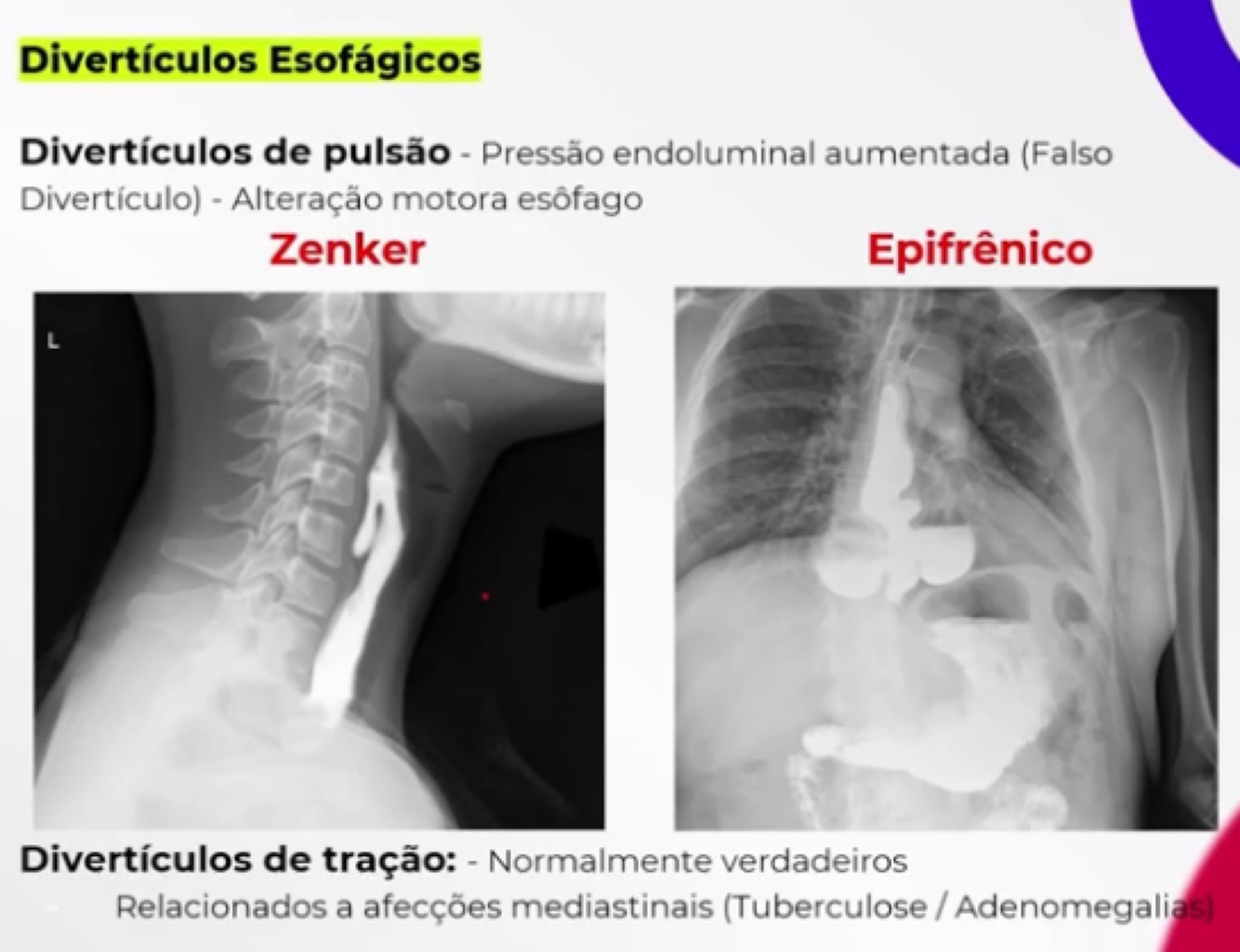 Quais os diagnósticos a seguir e quais os tipos de divertículos de esôfago?