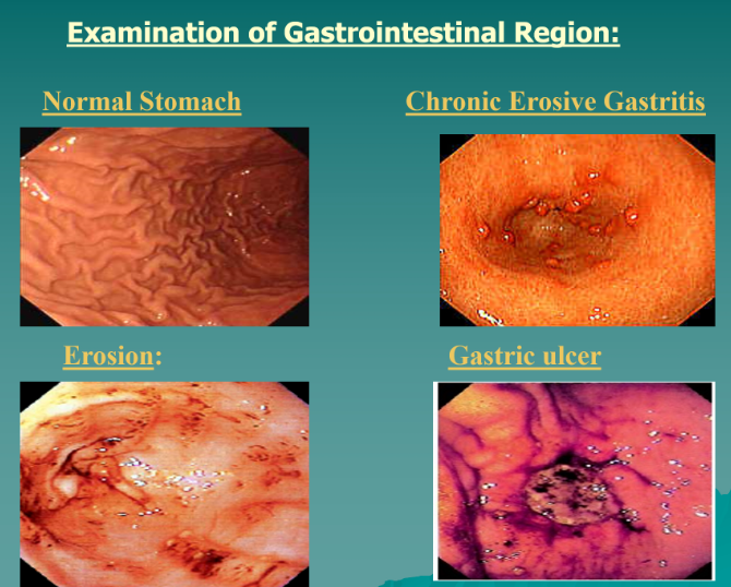 Normal stomach and abnormal stomach. Which is normal? What’s wrong with the others?