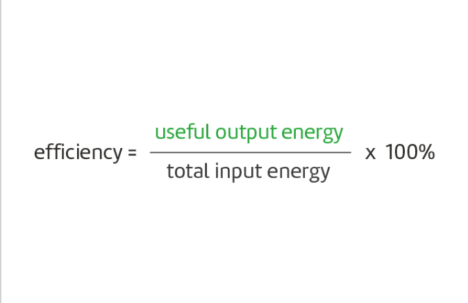 The efficiency of a device is the useful energy divided by the input energy, multiplied by 100.