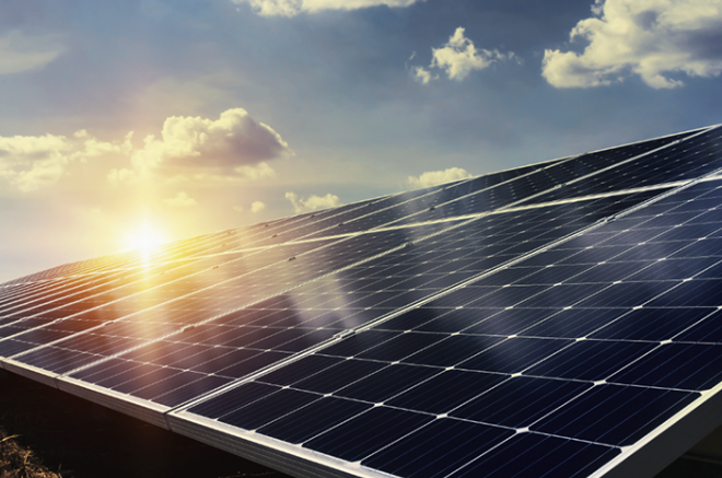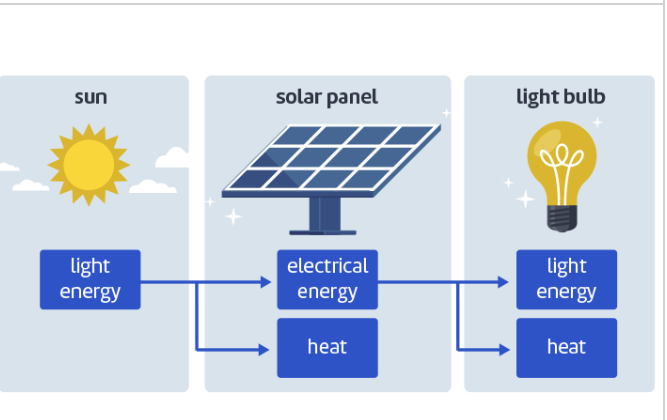 A solar panel transforms** light energy into electrical energy.**